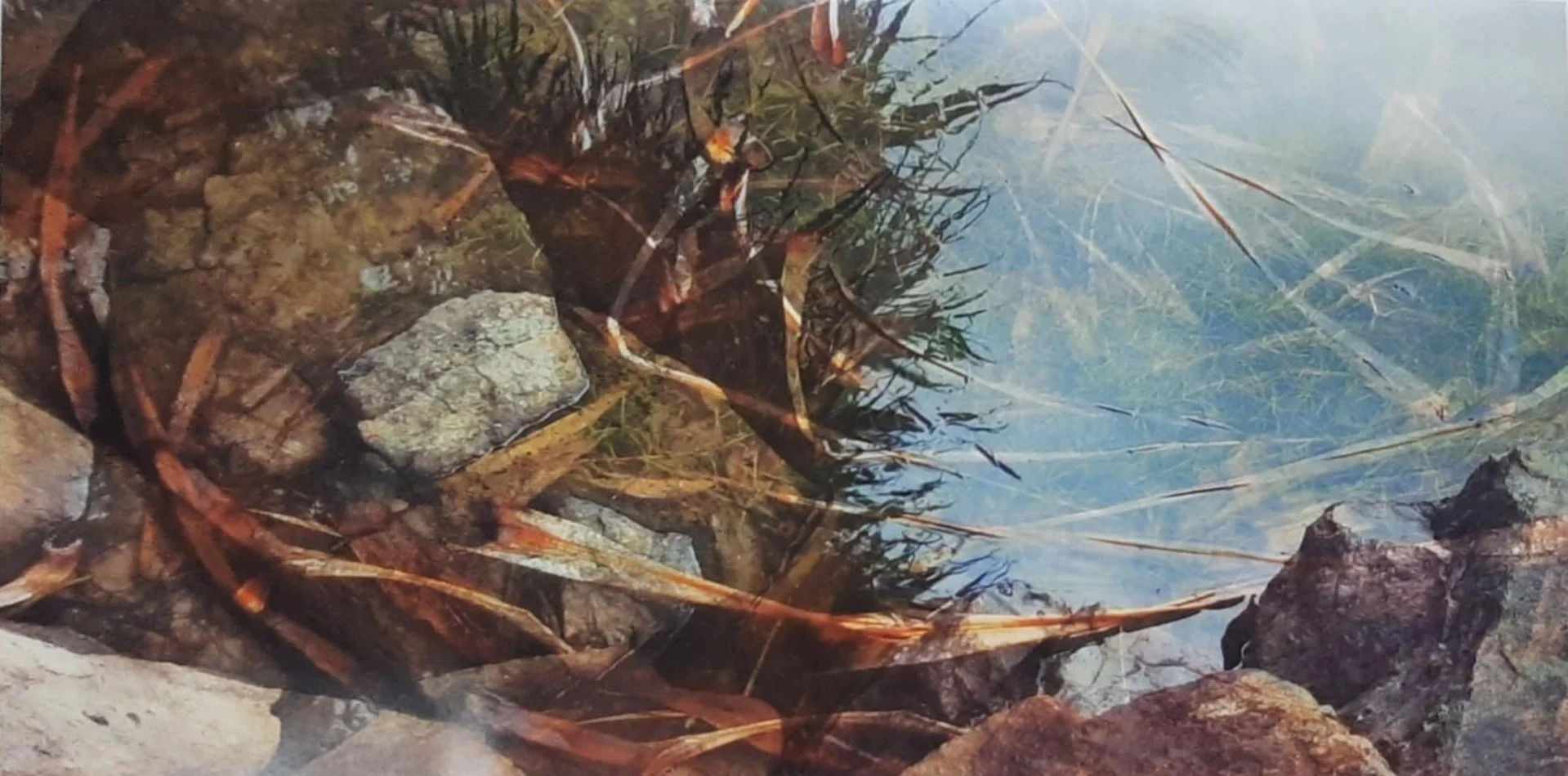 This body of work spans decades from work made over 35 years ago, to recent painterly digital experiments with camera movement, shutter speeds and multiple exposures. Through all of it flows the water—black with tea tree, luminous with memory, holding everything that was and will be.