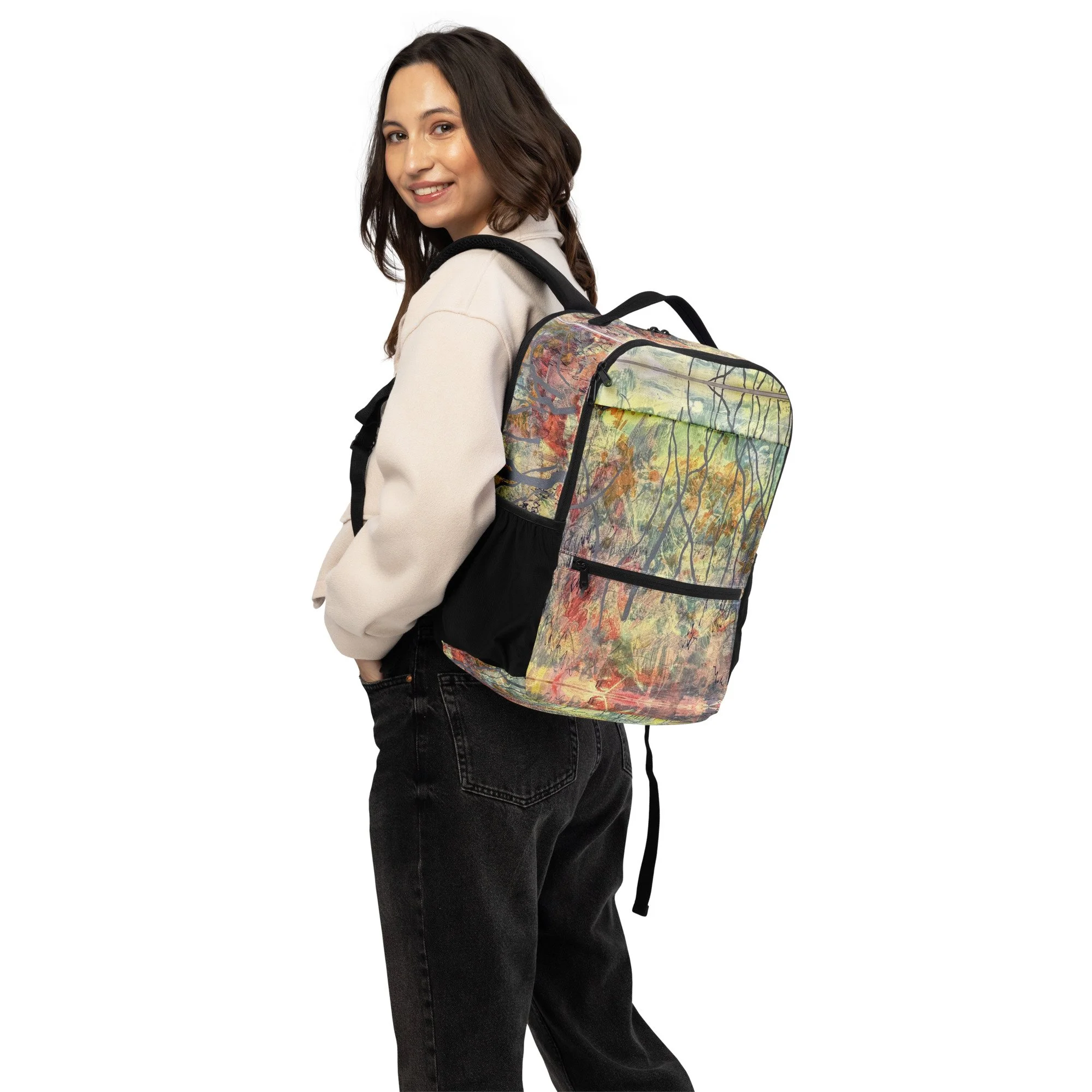 Express your style with a backpack that’s equal parts trendy and practical. It provides spacious compartments, a secure laptop pocket, and a comfy fit to keep you ready for work, weekend trips, and last-minute adventures. Original artwork by Cheryl Mortimer.